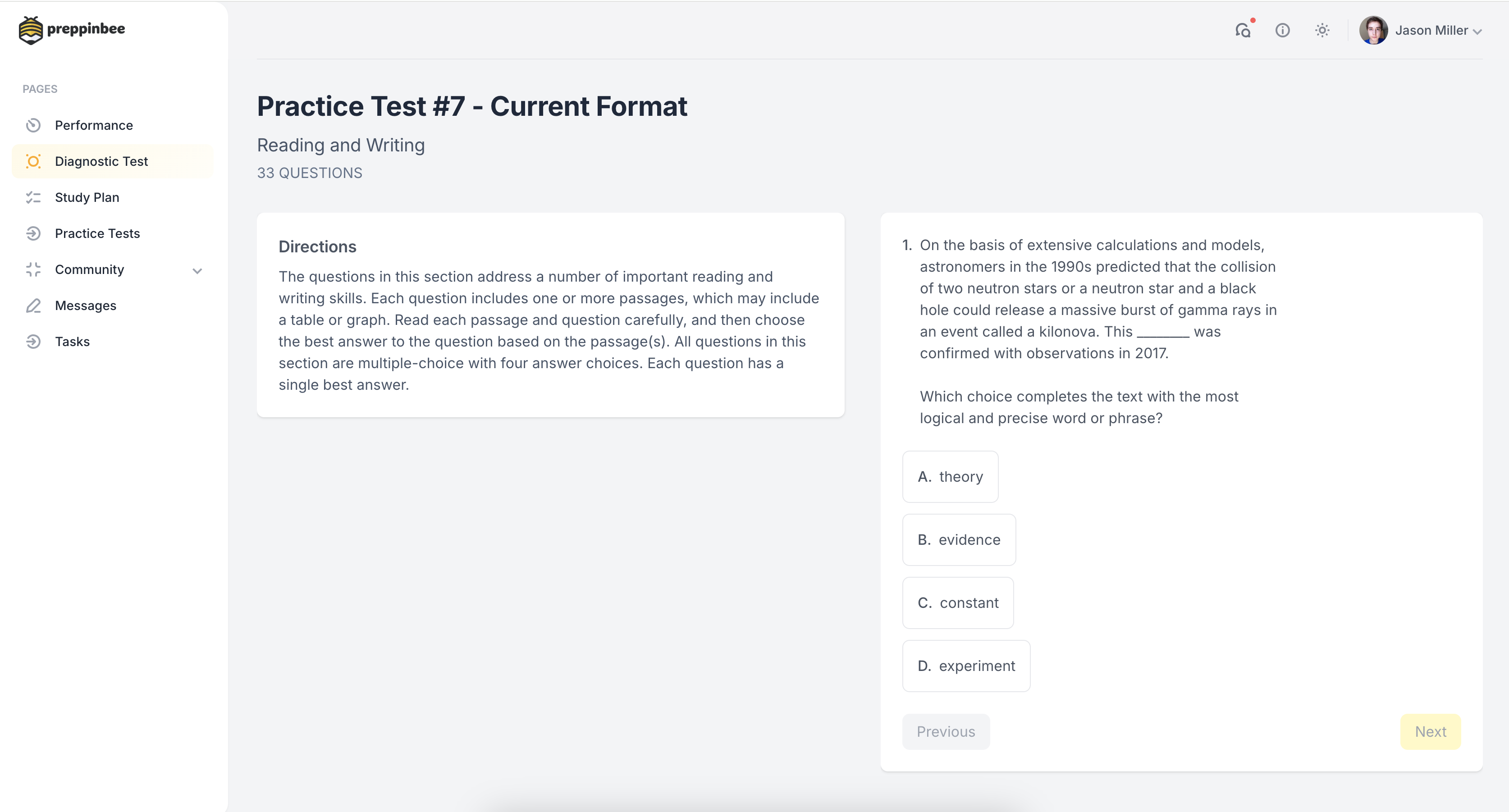 Preppinbee not only provides access to significantly more official tests, it also allows you to create topic specific tests based on students needs, ensuring a personalized and effective learning experience.